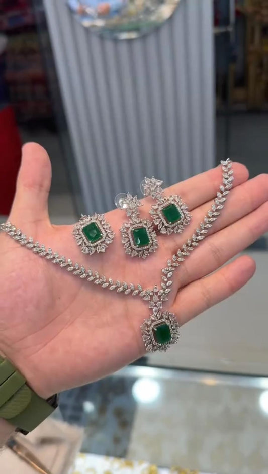 Elegant Silver Zircon Jewelry Set – Necklace, Earrings & Pendant